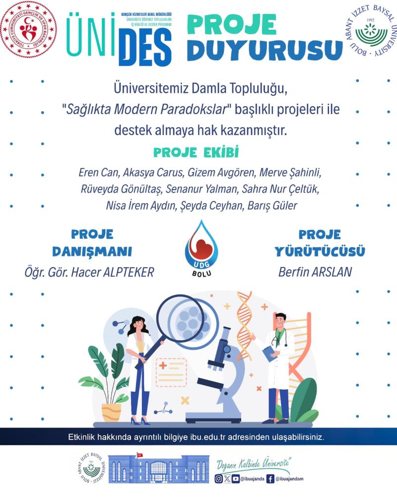 Topluluk, Gençlik ve Spor Bakanlığı Gençlik Hizmetleri Genel Müdürlüğü tarafından yürütülen Üniversite Öğrenci Toplulukları İş Birliği ve Destek Programı (ÜNİDES) kapsamında da önemli bir başarı elde etti. Damla Öğrenci Topluluğunun “Sağlıkta Modern Paradokslar” başlıklı projesi ÜNİDES programı kapsamında destek almaya hak kazandı.